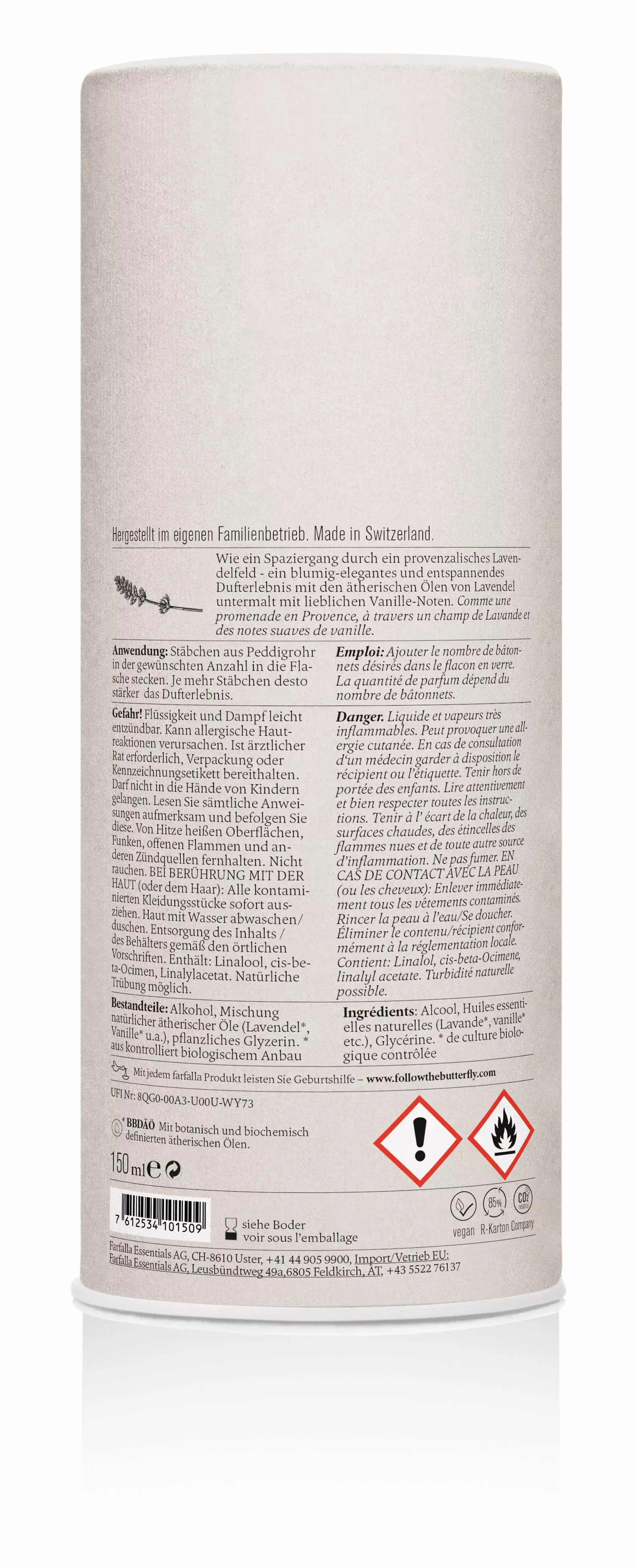 Diese hochwertigen Duftstäbchen sorgen für eine langanhaltende, natürliche Raumbeduftung ohne großen Aufwand. Wie ein Spaziergang durch ein provenzalisches Lavendelfeld entfaltet sich ein blumig-elegantes und entspannendes Dufterlebnis. Die beruhigende Wirkung von Bio-Lavendel wird sanft durch liebliche Vanille-Noten abgerundet und schafft eine harmonische Atmosphäre.