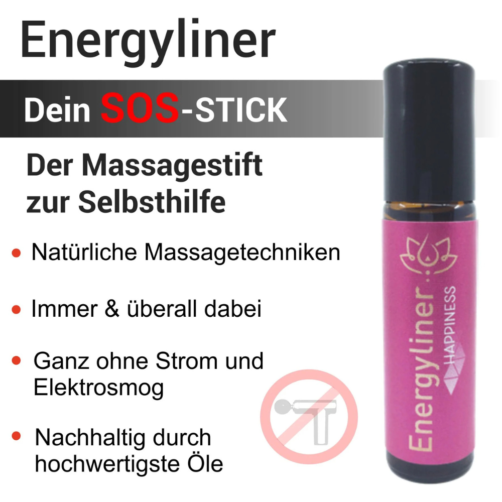 Der Energyliner Happiness ist ein vielseitiger Massagestift, der gezielt Verspannungen löst und gleichzeitig Körper, Geist und Seele in Einklang bringt. Seine Rezeptur aus erlesenen Heilpflanzenölen wurde speziell entwickelt, um stimmungsaufhellend zu wirken, die Konzentration zu fördern und trockene sowie problematische Hautpartien zu regenerieren. Durch regelmäßige Anwendung aktiviert der Stift die körpereigene Harmonie und unterstützt das allgemeine Wohlbefinden.