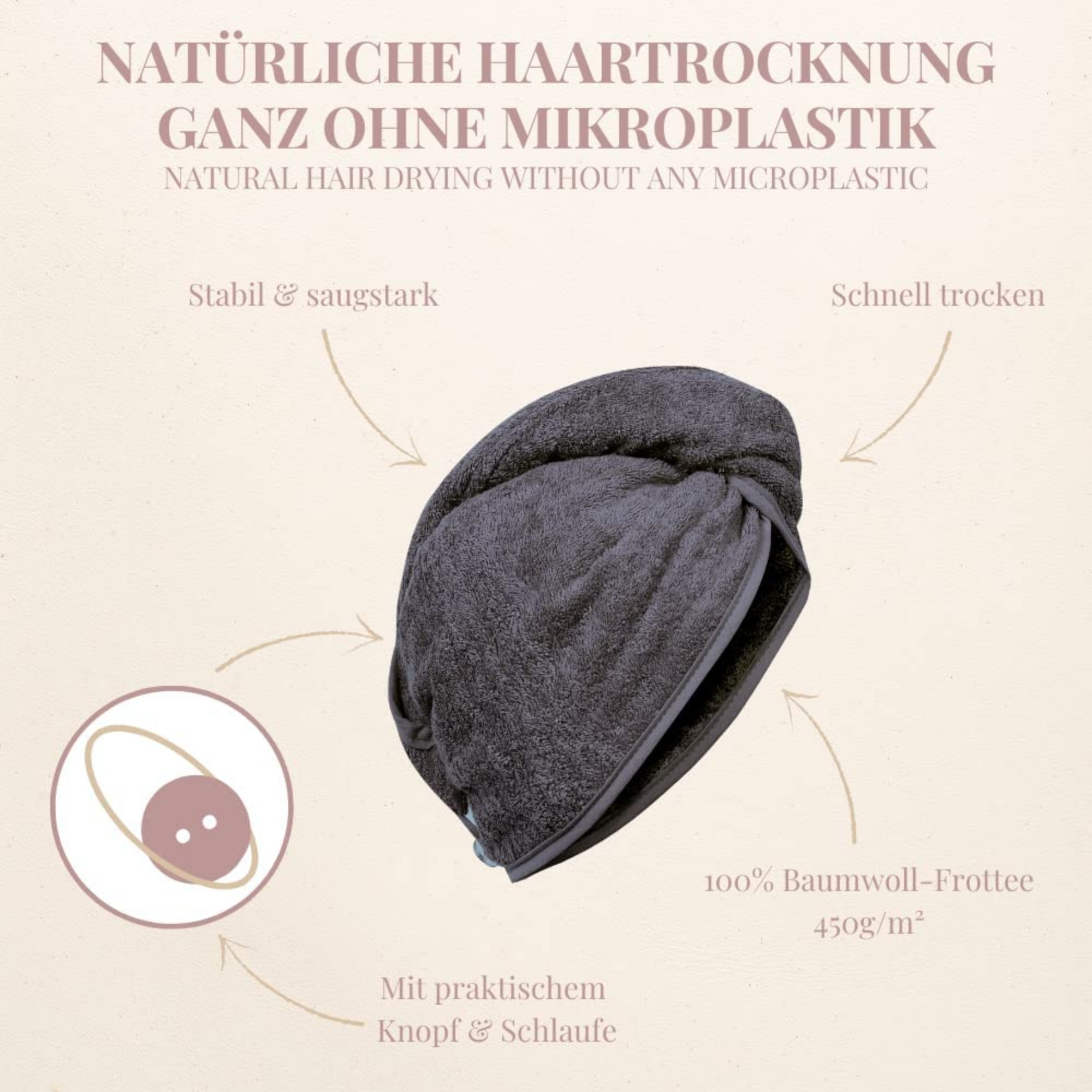 Mit diesem praktischen Haar-Turban in Einheitsgröße mit innovativer Knöpftechnik wickeln Sie Ihr Haar sicher und stabil im Handumdrehen ein. Kein lästiges Verrutschen mehr! Ob im Kosmetikstudio, in der Sauna, Badewanne oder Dusche – der Carenesse® Haar-Turban ist ein zuverlässiger Begleiter!