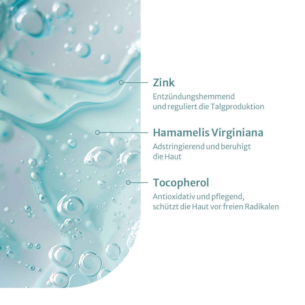 Zinkoxid hilft, Unreinheiten zu reduzieren, beruhigt gerötete Haut und unterstützt den Heilungsprozess.