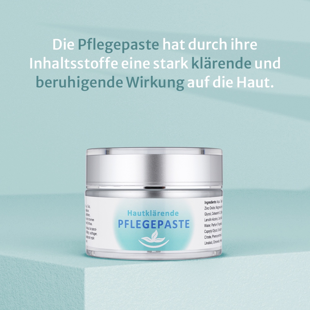 Die Hautklärende Paste ist eine hochwirksame Pflege für unruhige, gerötete, extrem trockene oder schuppige Haut sowie für Haut, die zu Pickeln neigt. Wertvolle Inhaltsstoffe klären intensiv, unterstützen die Hautregeneration und fördern ein verfeinertes, ebenmäßigeres Hautbild.
