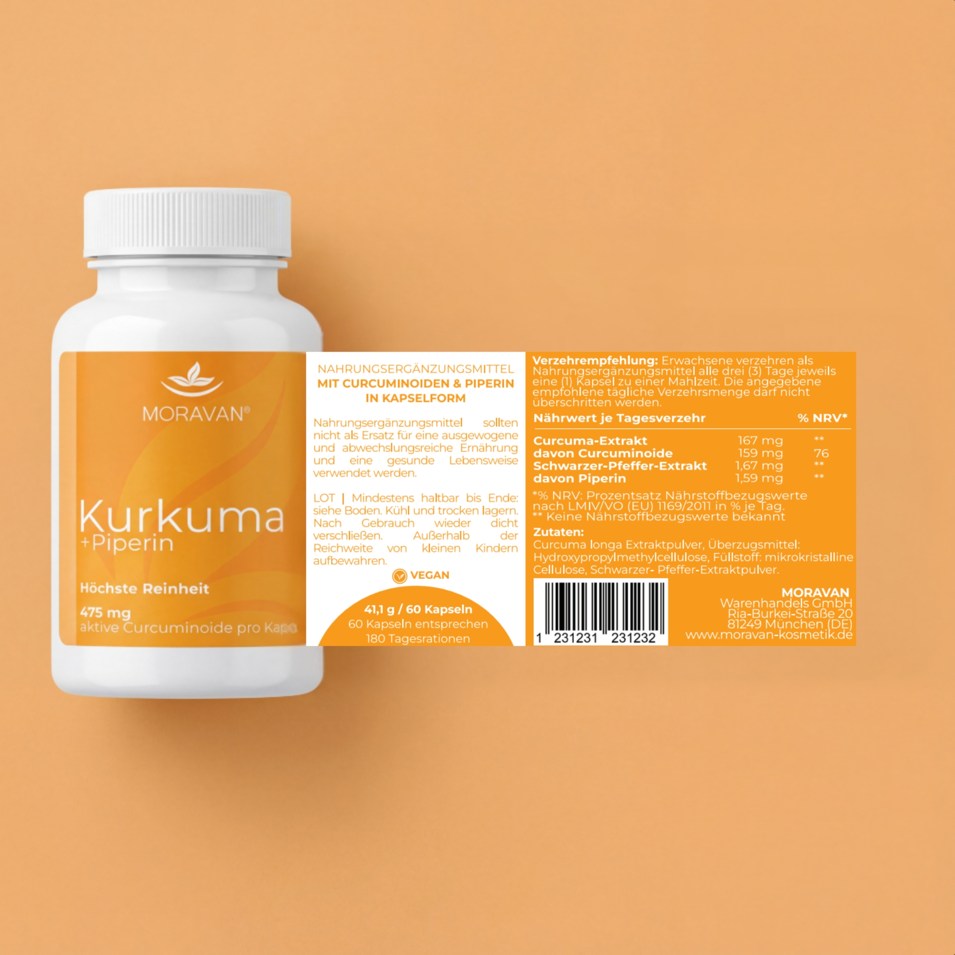 ✔ Hoher Gehalt an Curcuminoiden (159 mg pro Verzehr)