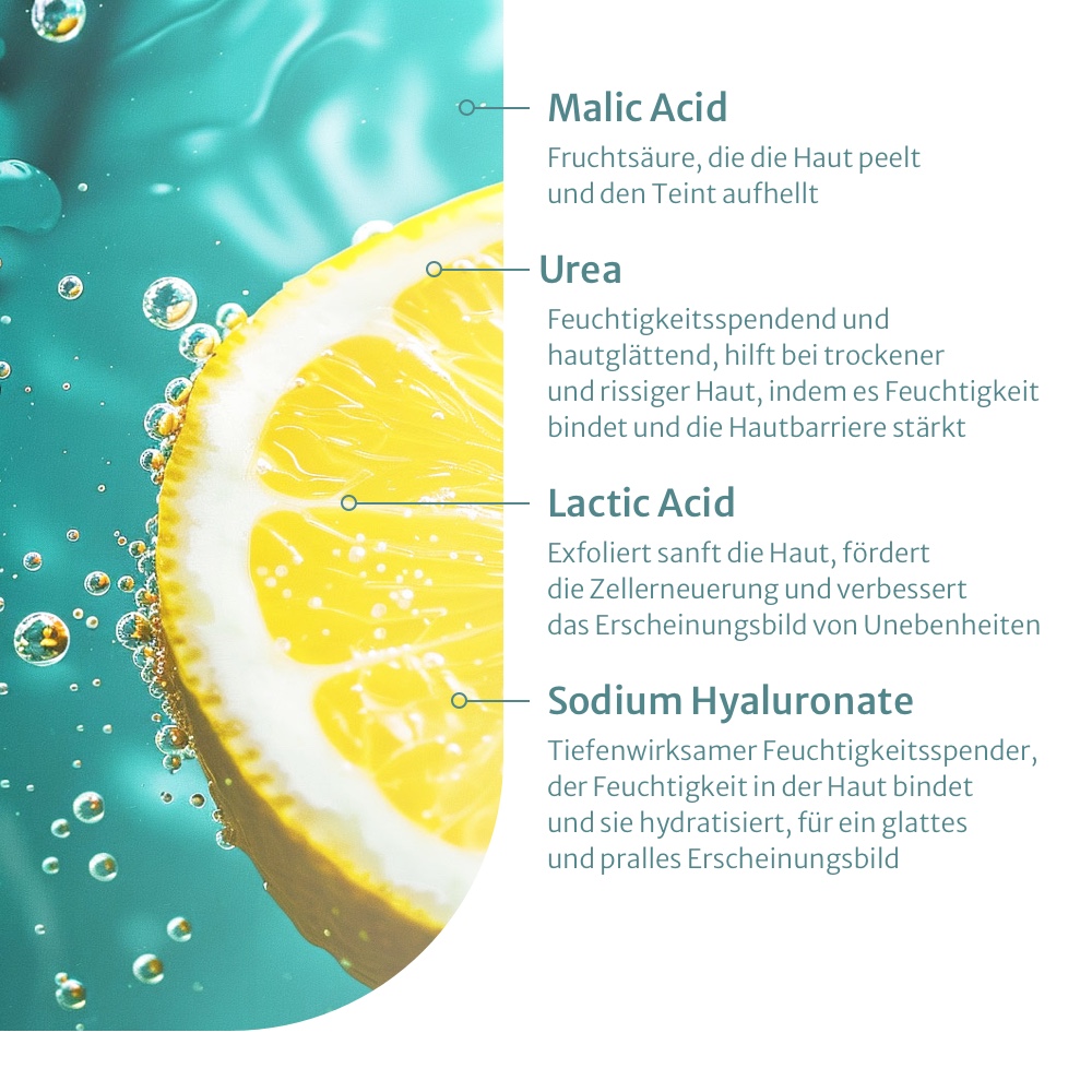 Milchsäure hilft, den Feuchtigkeitshaushalt der Haut zu regulieren und unterstützt ihre natürliche Schutzbarriere.
