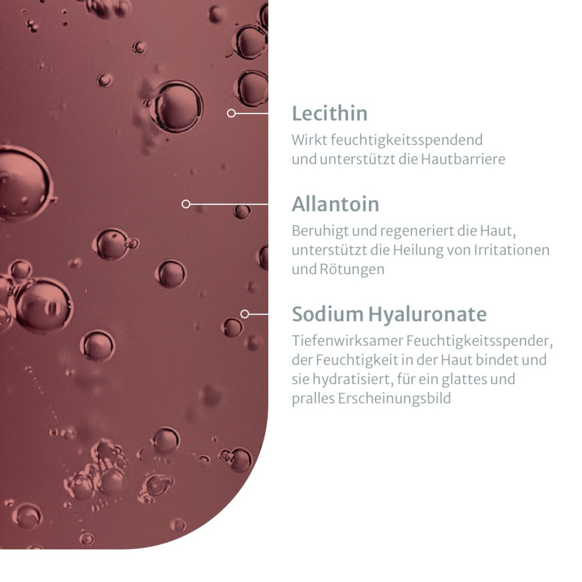 Panthenol unterstützt die Hautregeneration, beruhigt gereizte Haut und spendet intensiv Feuchtigkeit.