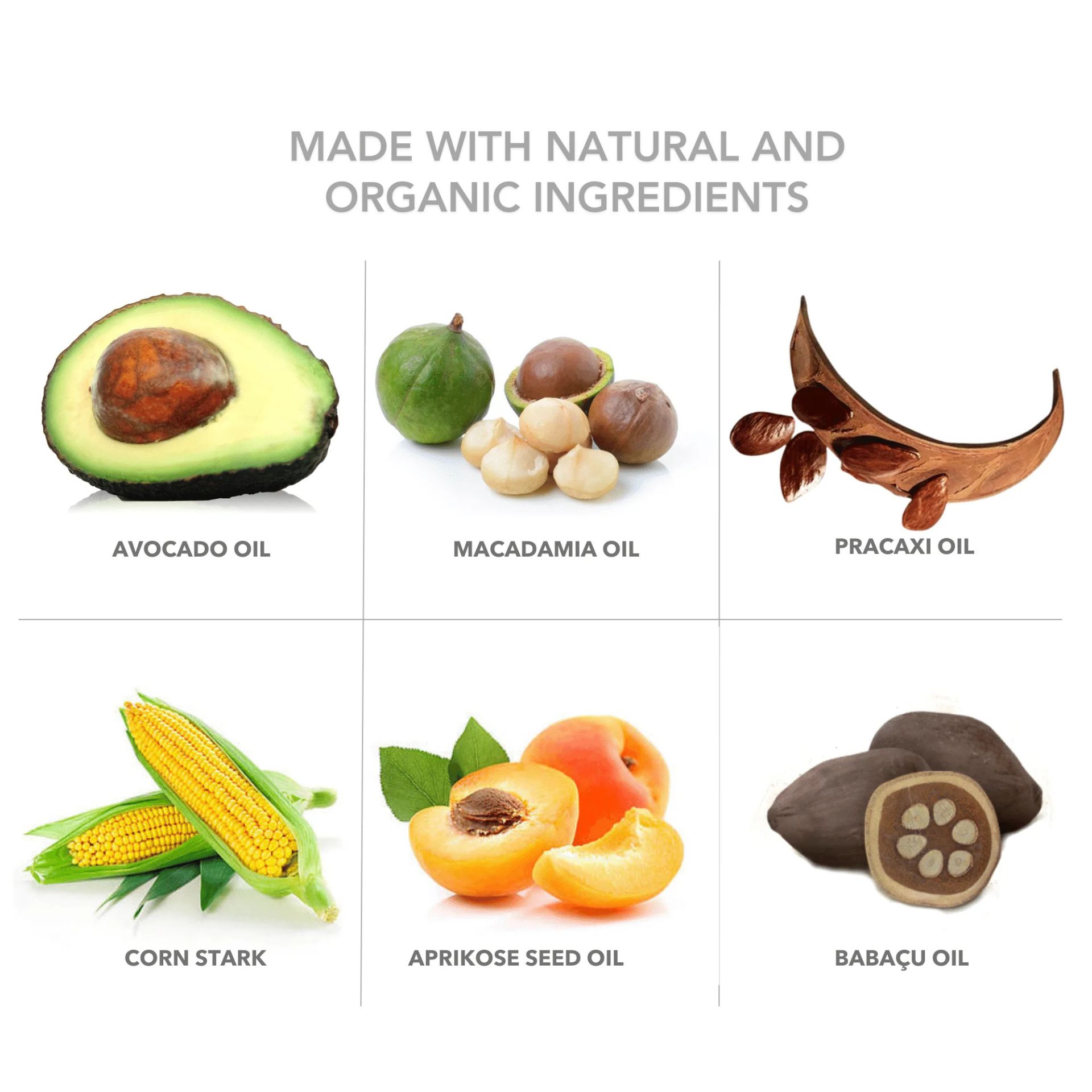 Wertvolle Öle wie Buriti-, Babaçu-, Avocado- und Karanjaöl pflegen intensiv, versorgen die Haut mit Feuchtigkeit und schützen sie vor dem Austrocknen. Antioxidativ wirksames Vitamin E stärkt die Hautbarriere und bewahrt ein frisches Aussehen.