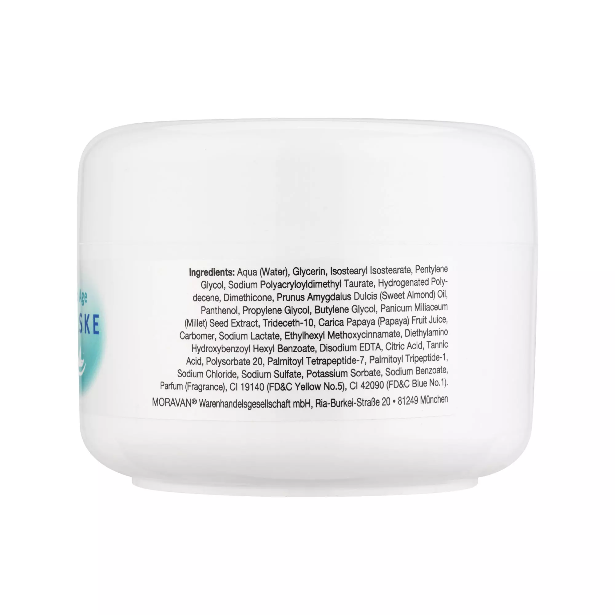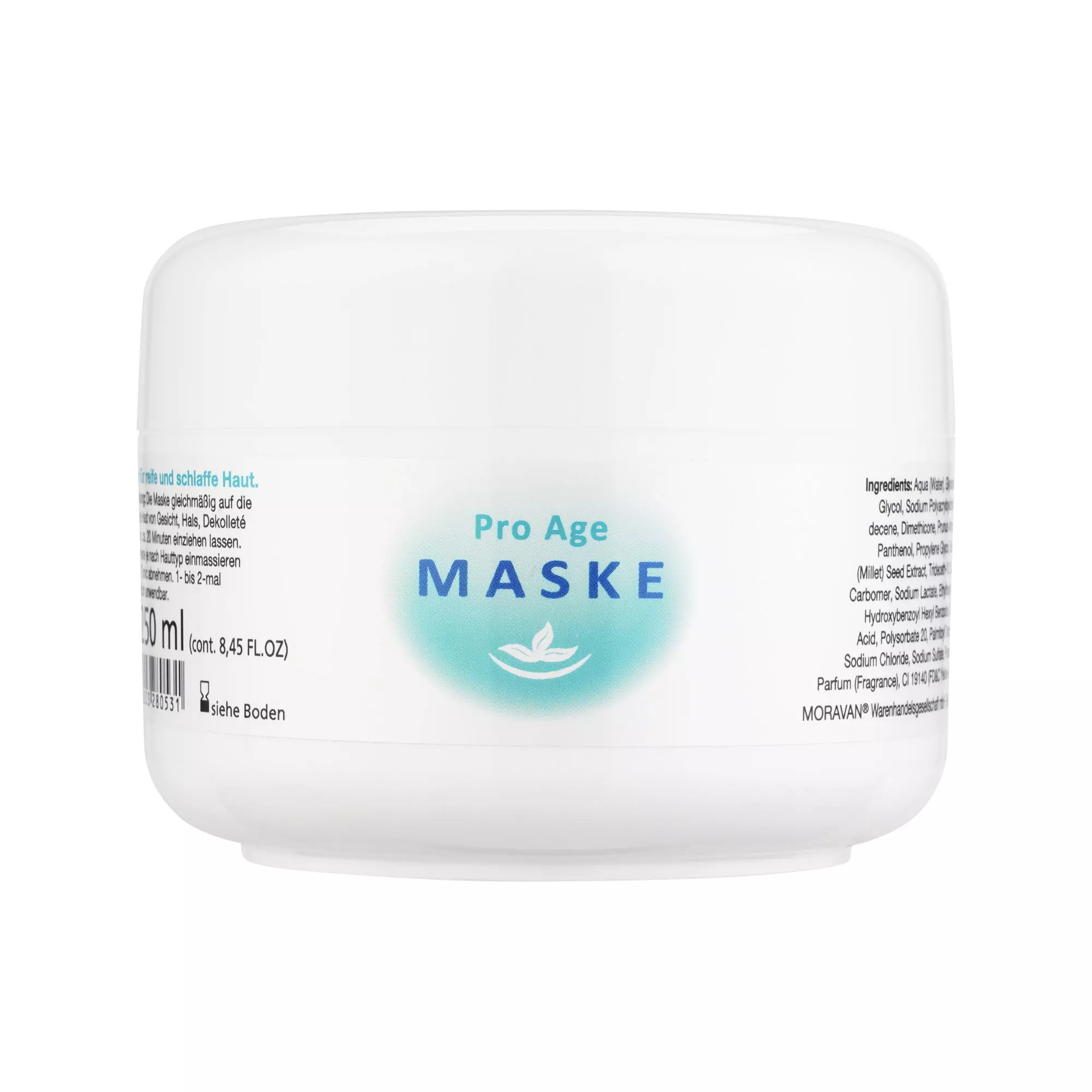 Die Pro Age Maske kombiniert intensive Feuchtigkeitspflege mit einer hautstraffenden Wirkung. Sie kann helfen, vorhandene Fältchen zu minimieren, den Feuchtigkeitshaushalt der Haut auszugleichen und die Hautstruktur sichtbar zu glätten. Papaya-Fruchtextrakt unterstützt die Regeneration und schützt die Haut, während Hirseextrakt und Tannine Faltenbildung vorbeugen können. Amino-Peptide fördern die Feuchtigkeitsversorgung und stärken die Hautbarriere für ein jugendliches, strahlendes Hautbild.