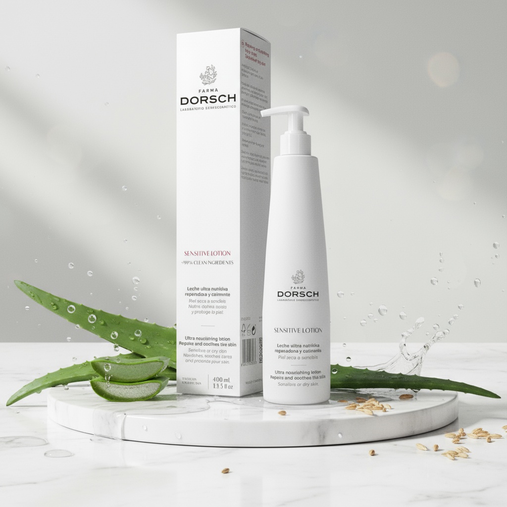 Die Sensitive Körperlotion von Farma Dorsch ist eine intensiv nährende, feuchtigkeitsspendende und regenerierende Pflege für empfindliche und trockene Haut. Ihre milde Rezeptur mit über 99 % empfehlenswerten Inhaltsstoffen eignet sich auch bei Hautreaktionen oder nach medizinisch-kosmetischen Behandlungen. Der pflanzliche Epithelwachstumsfaktor (EGF) stimuliert die natürliche Zellerneuerung und erhöht die Hautabwehr, während Aloe Vera und Haferextrakt beruhigen, Feuchtigkeit spenden und Rötungen mildern. Allantoin unterstützt die Hautregeneration, reduziert Irritationen und verleiht ein geschmeidiges Hautgefühl.