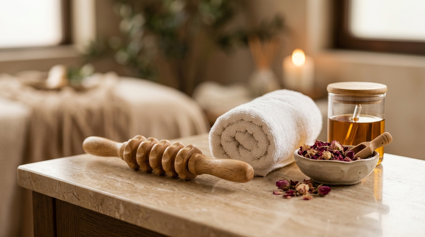 In Heilpraktiker-Praxen steht manuelle Lymphdrainage im Mittelpunkt, ergänzt durch Trockenbürsten-Routinen und pflanzliche Anti-Cellulite-Öle (Koffein, Zitrusöl, Rosmarin) als kontinuierliche Begleitbehandlung.
