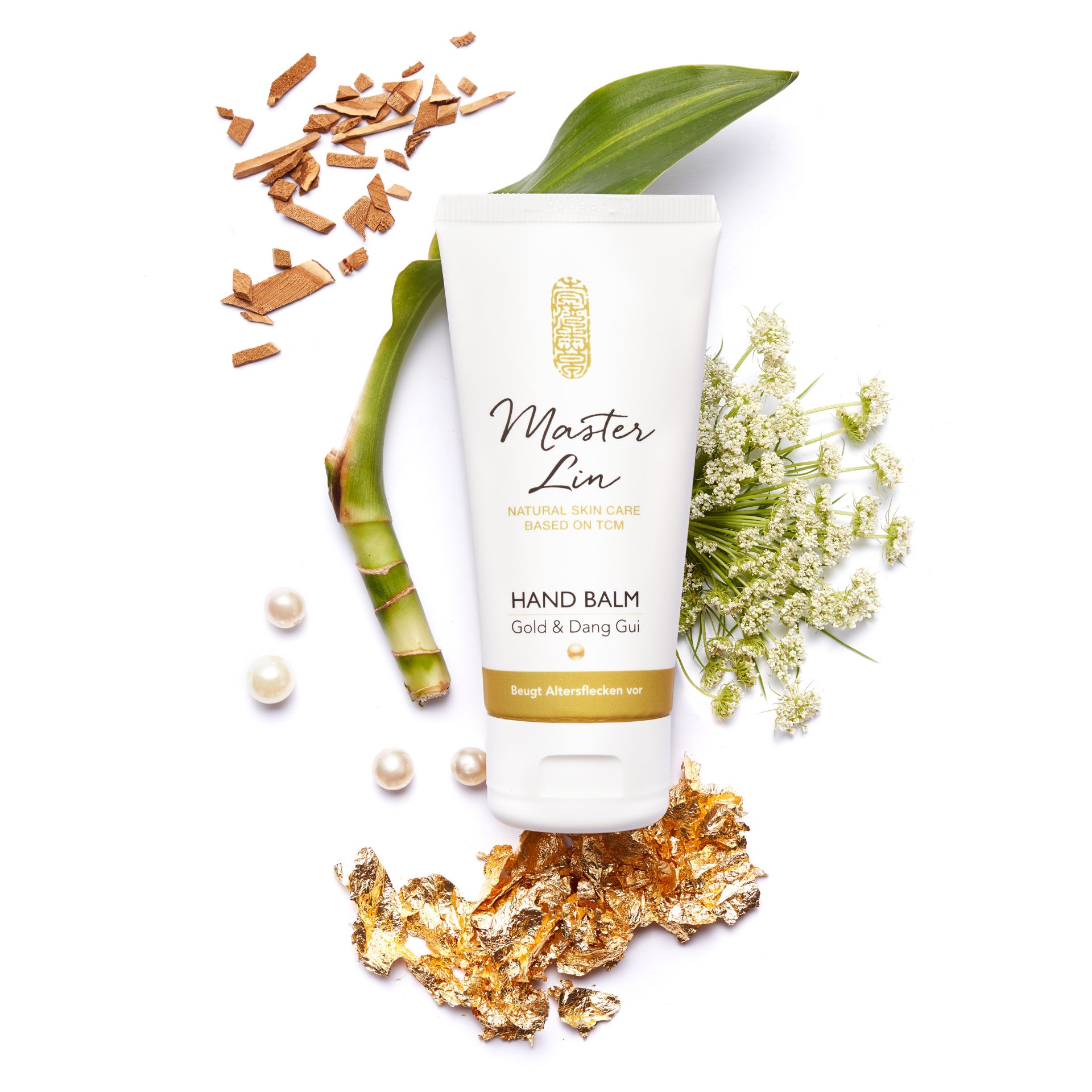 Der Hand Balm Gold & Dang Gui versorgt trockene und strapazierte Hände intensiv mit Feuchtigkeit, zieht schnell ein und schenkt ein seidig gepflegtes Hautgefühl. Die luxuriöse Formel mit Dang Gui (chinesische Engelwurz), Feingold, Perle, Ginseng, Reishi und Bambus stärkt die Hautbarriere, fördert die Regeneration und schützt wirksam vor dem Austrocknen. Die Textur legt sich angenehm leicht auf die Haut, pflegt ohne Fettfilm und hinterlässt einen sanften, dezenten Duft. Ideal für jede Handpflege-Routine – auch für sensible Haut geeignet.