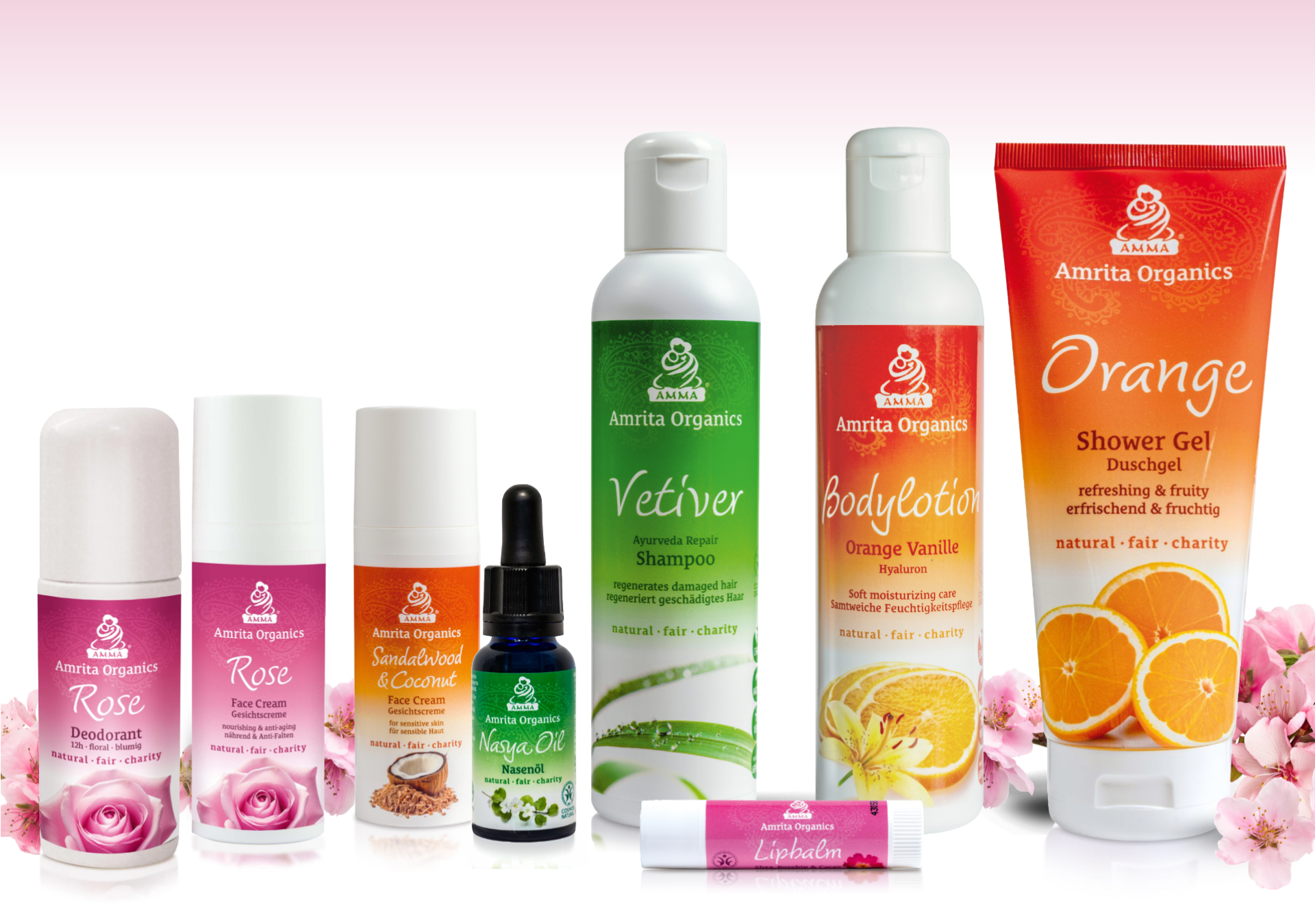 Die Naturkosmetiklinie Amrita Organics, inspiriert vom Leitgedanken „Schönheit, die von Herzen kommt“, entstand, um die Hilfsprojekte der indischen NGO Embracing the World zu fördern. Diese Produkte vereinen hochwertige Bio-Hautpflege mit den strengen Standards kontrollierter Naturkosmetik und tragen das COSMOS-Siegel. Die Linie setzt auf natürliche Inhaltsstoffe aus kontrolliert biologischem Anbau oder Wildsammlung. Amrita Organics verzichtet konsequent auf Parabene, Paraffine sowie synthetische Farb-, Duft- und Konservierungsstoffe. Tägliches Handeln im Einklang mit der Natur.
